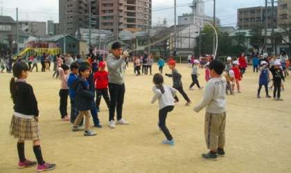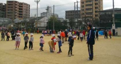 大縄跳びに取り組んでいる様子です。