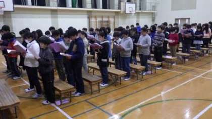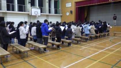 今日から体育館での練習を始めました。座席の確認や,「門出の言葉」の練習をしました。