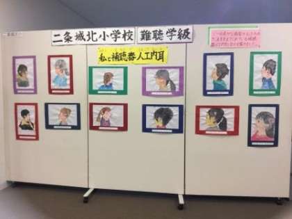 本校育成学級・難聴学級の子どもたちの作品が御池ギャラリーに展示されました。