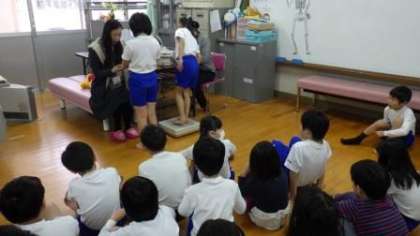 今日は3年生が発育測定をしています。手足の爪のチェックもしました。