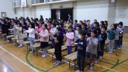 入学式での「おむかえの言葉」と歌を練習しています。