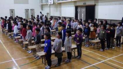 「おむかえの言葉」の練習をしています。歌「ともだちになるために」は,途中手話もつけて歌います。新1年生をしっかりとおむかえするために,練習をがんばっています。