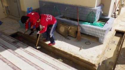 今年度もPTAの皆さんが学校の大掃除をしてくださいます。二条城北レッドスターズは,この後練習があるため,時間よりも先に運動場の側溝掃除などをしてくれています。