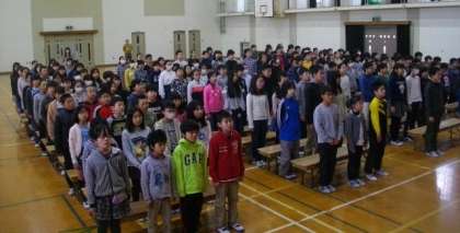 5,6年生が,体育館で卒業式の練習をしています。緊張しながらも,凛とした雰囲気の中で練習が進んでいます。卒業式が楽しみです。