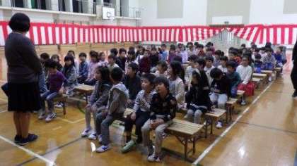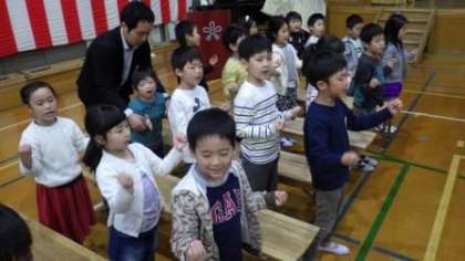 新2年生が入学式の練習にきてくれました。とても元気に大きな声で「おむかえのことば」の発表を練習しています。歌「ともだちになるために」も,途中で手話もつかって楽しく歌っています。