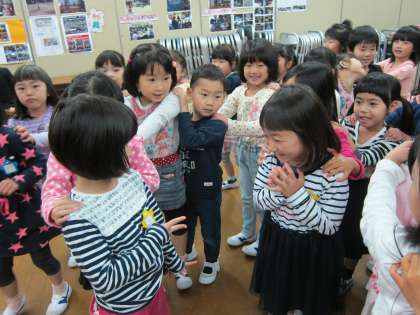 入学してから1週間がたち,子どもたちは,少しずつ学校に慣れてきました。生活科の時間に,1年生のみんなや先生となかよくなるために,「どうぶつジャンケン」「はてさてなんにんだ」「かもつれっしゃ」などをして,みんなで楽しく遊びました。