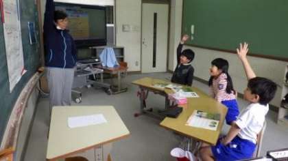 3年草の芽学級は,音楽の学習で「春の小川」の歌詞について考えています。4年生は体育で50m走のタイムを計っています。