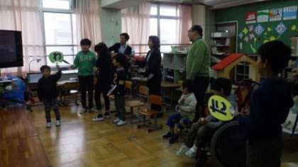 わかたけ学級の朝の会では,「いっぱいやろう」や「わかたけがっきゅうのうた」の歌を楽しく歌っています。朝の会の後は,トレーニングで体育館を走っています。