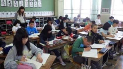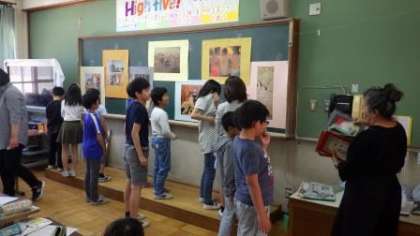 5年生は図工の学習で,7つの名画を鑑賞しています。6年生は国語の学習で,物語文「カレーライス」から読み取ったことをノートに書いています。