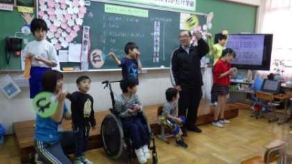1年生は体育館で,来週の「1年生をむかえる会」での並び方の練習をしています。わかたけ学級は,「わかたけ学級の歌」を楽しく歌っています。3年生は道徳で,自分が考えたことをノートに書いています。