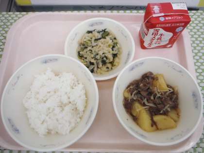 「肉じゃがのお肉とごはんが合っていておいしかったです。きりぼし大根の煮つけもやわらかくておいしかったです。またつくってください。」(5年児童)