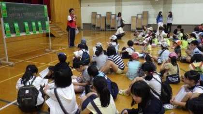 今年もたくさんの子どもたちが参加しました。ラリーをする時の注意などを聞いた後,子どもたちが地域へ出発しました。