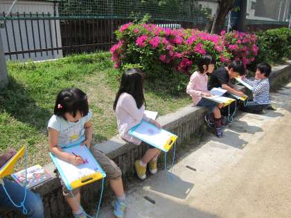 学校の中で「春みつけ」をしました。虫や花など,見つけた「春」をカードにかきました。みんな自分が見つけた「春」を一生懸命にかいていました。
