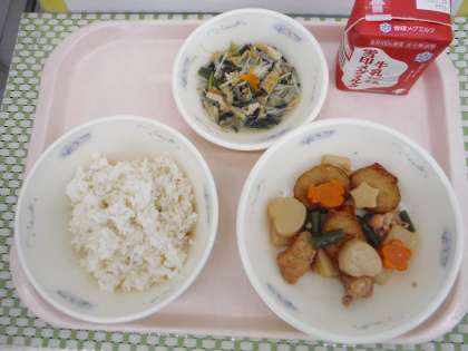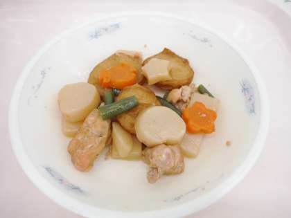 今日の平天とこんにゃくの煮つけには,ハートや星型,魚型などのこんにゃくやにんじんが入っていて,子どもたちは見つけて喜んで食べていました。