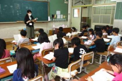 2年生は漢字の学習をしています。5年生は国語の学習で,新聞を読みくらべています。6年生は,6年生になってからのふり返りを書いています。