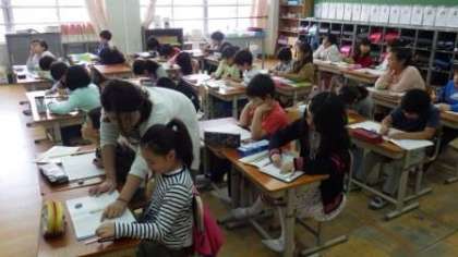 3年生は算数でわり算の学習をしています。6年生は修学旅行に向けて,しおりをつくっています。