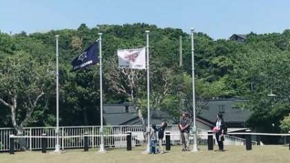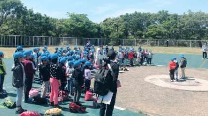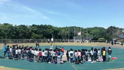 昼食の後,第一営火場で入所式をしました。大きな声でしっかりと発表できました。