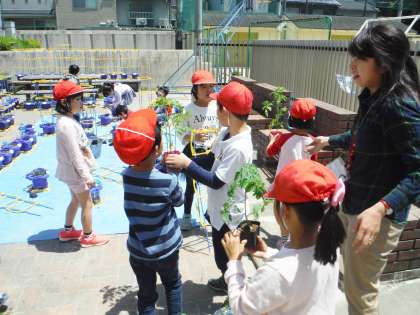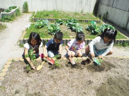 2年生がランチガーデンで,トマトの苗植えをしました。