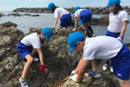 説明をしっかりと聞いて,宮崎浜へ安全に移動できました。宮崎浜では,いろいろな生き物を見つけることができました。