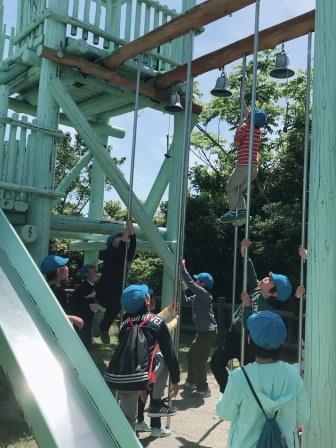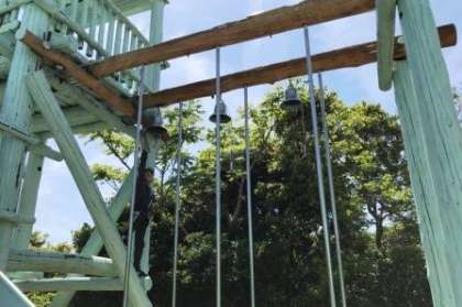 浦山ラリーが始まりました。グループで活動します。「山の砦」では,8回鐘を鳴らすという課題に挑戦しています。
