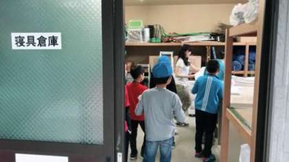 シーツをたたんだ後は返却して,朝のつどいの準備をしています。