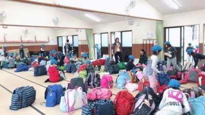 帰りのバスに積み込むリュックサックの荷物整理をしています。荷物の用意をした後は,3日間お世話になったみさきの家の掃除をしました。「来たときよりも美しく」と,最後まで気持ちを合わせて掃除しています。
