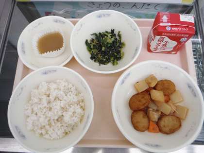 「こまつなのごまいためは,シャキシャキとしたこまつなの歯ごたえがあり,おいしかったです。ひらてんとこんにゃくのにつけは,こんにゃくにもあじがしみこんでいておいしかったです。またつくってください。」(6年児童)