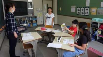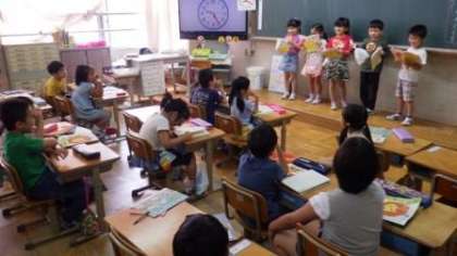 1年生は国語「はなのみち」の音読発表をしています。5年草の芽学級は外国語活動をしています。6年草の芽学級は国語で説明文の学習をしています。
