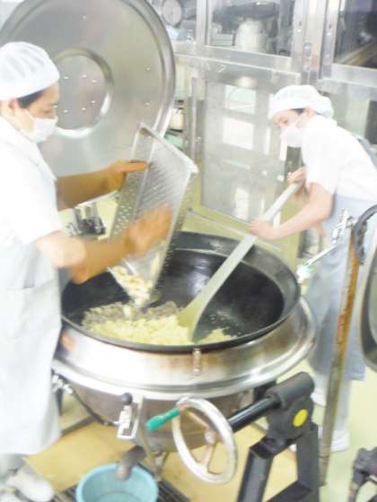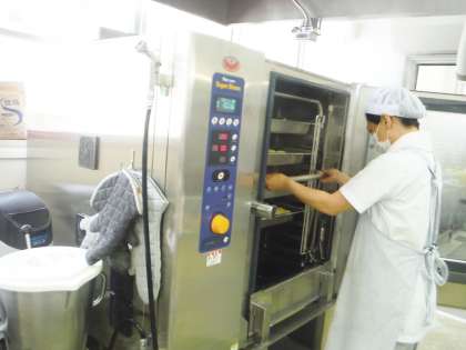 豚肉のケチャップ煮のじゃがいもをスチームコンベクションオーブンで蒸してから,釜で調理しました。じゃがいもが崩れることなくきれいに程よいかたさに仕上がり美味しいと好評でした。