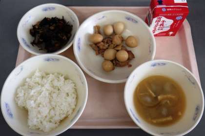 「けいにくのさっぱりにの,おにくとたまごがおいしかったです。」(2年児童)