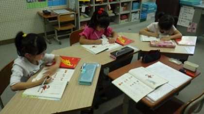 ひらがなや,小さい「っ」のつく言葉などの学習をしています。