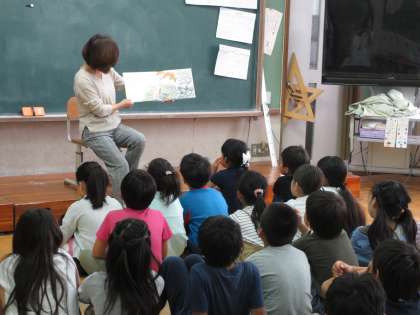 水曜日は読み聞かせの日です。学校運営協議会読書活動部会の皆様が楽しく読み聞かせをしてくださり,みんなお話に引き込まれていました。