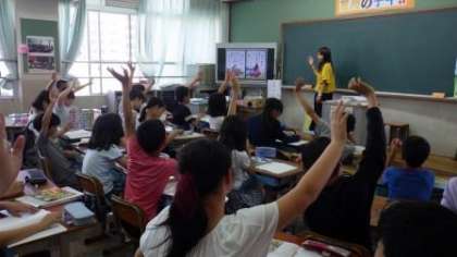 6年2組は,先日行った修学旅行についてパンフレットにまとめています。6年3組は社会で,平安時代について学習しています。