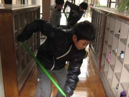 朝会の後,全校で大掃除をしました。頑張って掃除をしたので,校内がとてもきれいになりました。