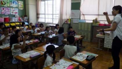 4日(月)1年音楽「はくをかんじて りずむをうとう」