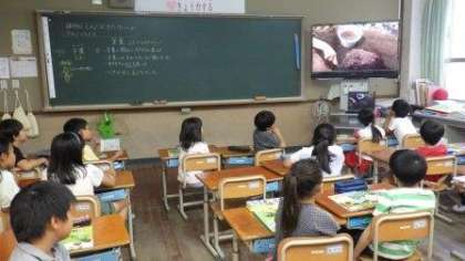 映像教材を使って,植物の育て方について復習しています。