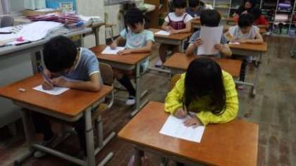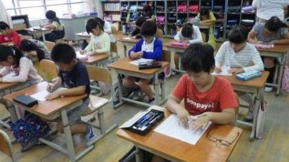 硬筆の学習をしています。ゆっくり,ていねいに書いています。