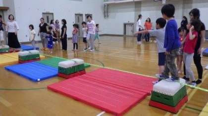 トランポリンなど,たくさんの楽しい運動遊びをしています。