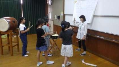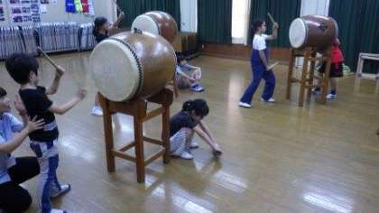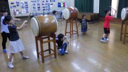 今日は5・6年生が太鼓の練習をしています。
