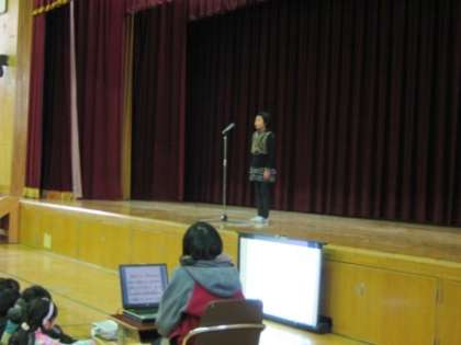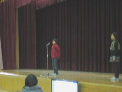 今日は,13回目のにじょっこタイムがありました。4年3組の3人のお友達が「今年の目標」について発表しました。「学習を頑張る。」「陸上を頑張る。」「文字を丁寧に書く。」「サッカーの試合で優勝する。」「人にやさしい言葉を言う。」など自分の目標について詳しく発表しました。