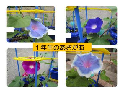 1年生が毎朝,水やりをして世話をしていたあさがおがついに花を咲かせました。これからしばらく,花が咲くのを楽しむことができます。自分のあさがおの花の色は何色かなと,楽しみにしている1年生の姿がありました。