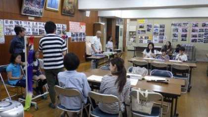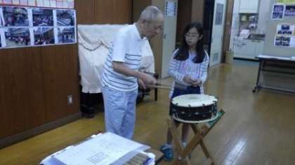 祇園祭の「月鉾」で長年お囃子を演奏されている地域の方を講師にお招きし,土曜学習・祇園囃子体験教室を行いました。リコーダーでお囃子のメロディーを演奏したり,鉦や太鼓を教えていただいたりしました。