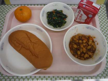 「私は、豆がにがてだけれどチリコンカーンはおいしかったです。私はほうれん草のソテーが好きなので,でてきてうれしかったです。」(6年児童)