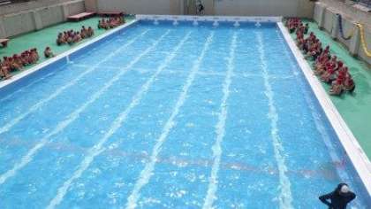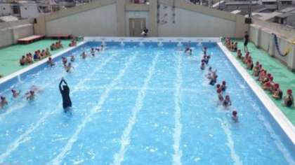午後は2年生が水泳学習をしています。水慣れの時と比べて水位が上がったので,「ロケット」などをして楽しんでいます。