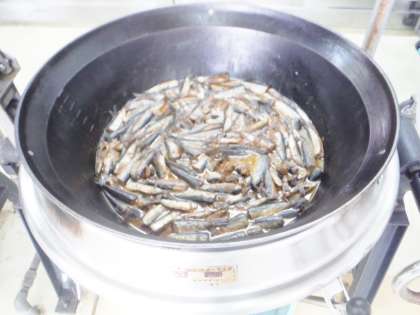 今日は,京都産のいわしを使用した地産地消の献立でした。給食室の大きな回転釜で朝から丁寧に煮つけました。