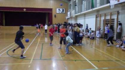 今日は,6−2と6−3が対戦しました。他の学年の子どもたちも,熱く応援しています。
