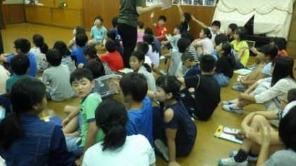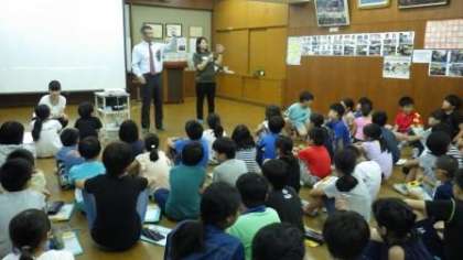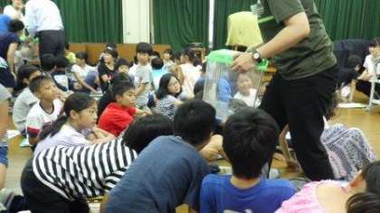 京都水族館の方をお招きし,出前授業をしていただいています。オオサンショウウオについての話を楽しく聞き,水環境についても考えています。