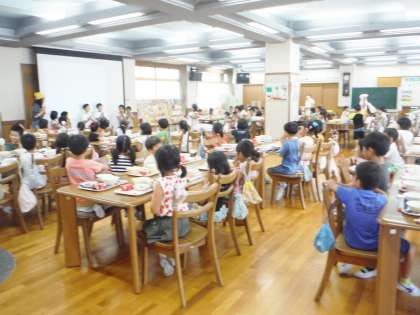 今週は,1年生がランチルーム週です。初めてのランチルーム給食で少し緊張しながらも楽しそうに食べていました。