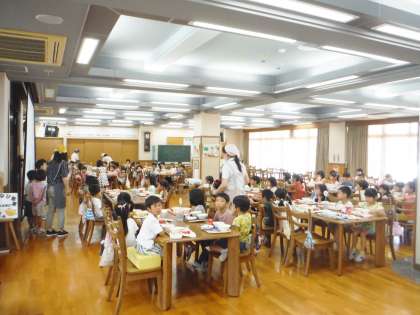 今日は1−2が食の学習を行いました。テーマは「らんちるうむってどんなところ?」です。みんなでなかよくたのしくおいしく食べるためには,マナーが大切であることを学びました。