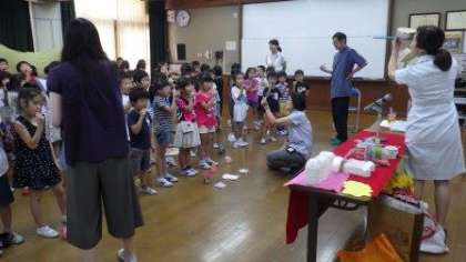 学校歯科医の先生と歯科衛生士さんに来ていただき,歯みがき巡回指導を行いました。歯についてのお話を聞いたり,歯みがきの仕方を教えていただいたりしました。これからも歯を大切にしてほしいと思います。